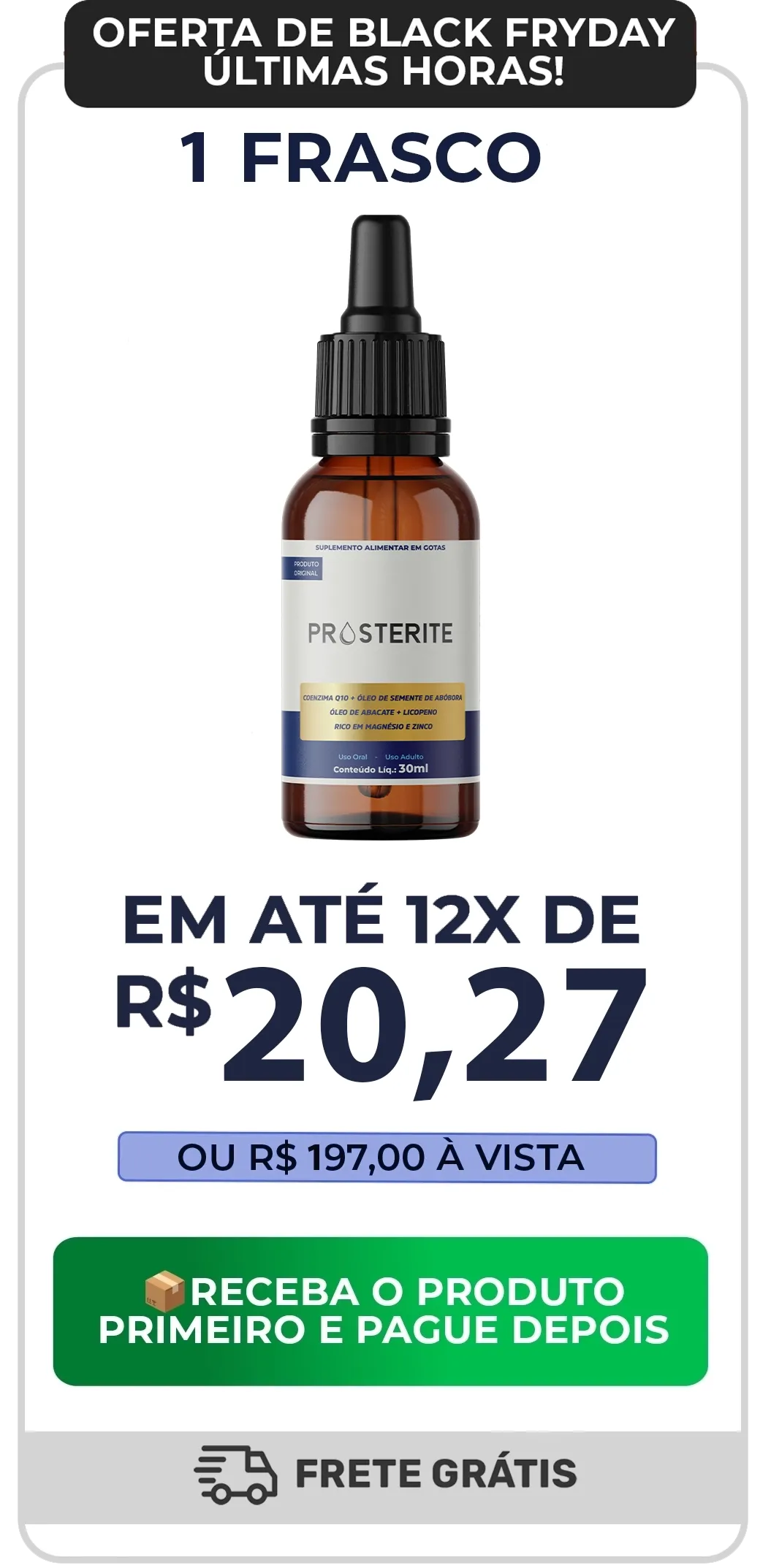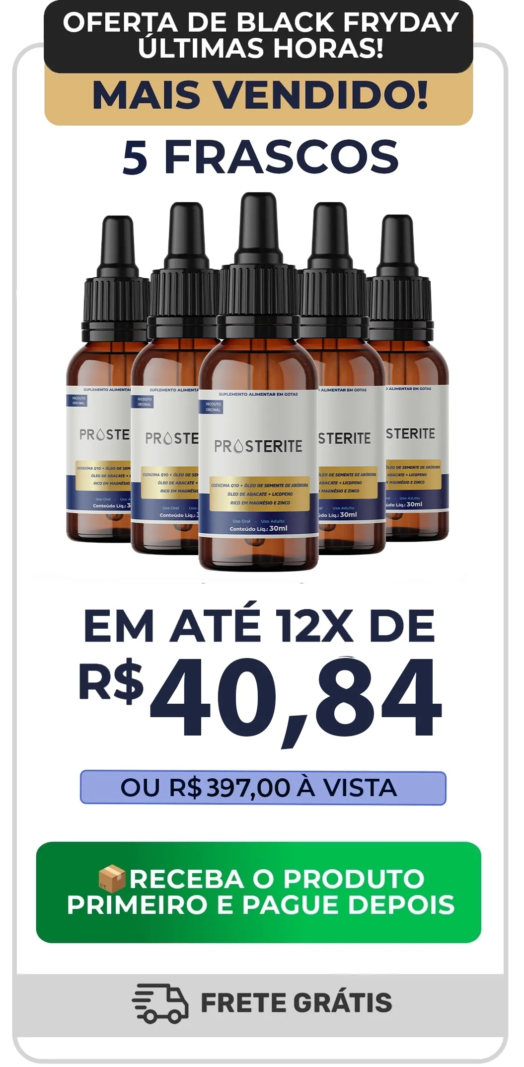 No PROSTERITE, a sua segurança vem em primeiro lugar. Por isso, oferecemos a opção de pagamento somente na entrega: você recebe o produto em mãos, confere tudo com tranquilidade e só então realiza o pagamento.